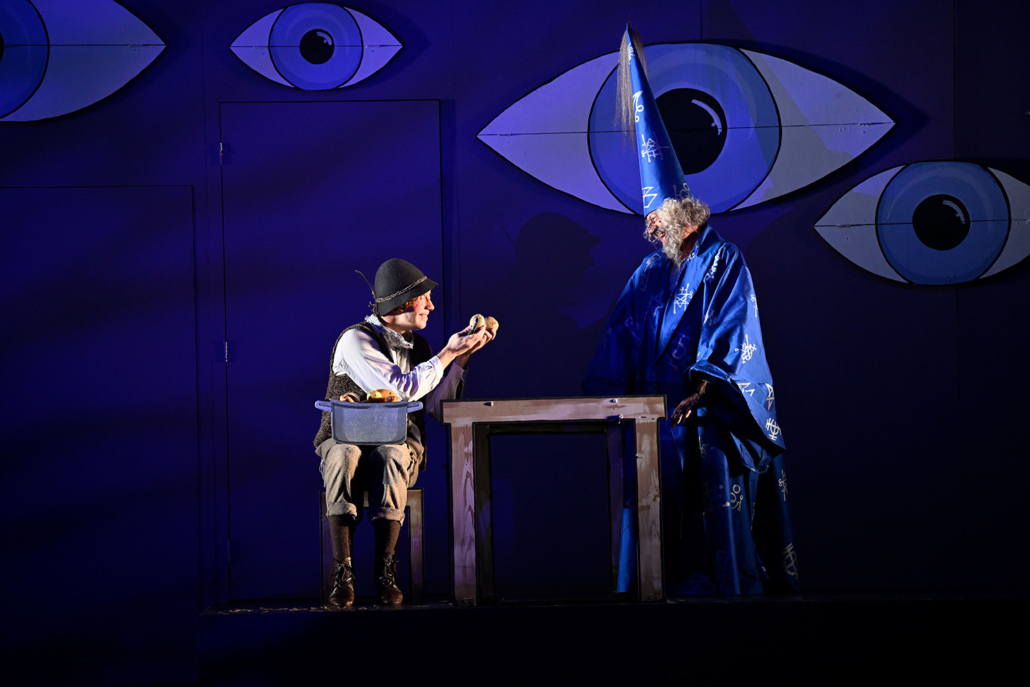 In seiner bunten, gagreichen Inszenierung vertraut Aron Stiehl ganz auf das Original von Preußler, das von Freundschaft, Zusammenhalt und Mut erzählt, ohne jemals belehrend zu wirken. Immer wieder bindet Aron Stiehl die jungen Besucherinnen und Besucher in das Geschehen mit ein. Vom ersten „Guten Morgen“ bis zur Unterstützung beim „Abriss“ des Schlosses des bösen Zauberers machen die Kinder lautstark und begeistert mit – so bunt und lebendig kann Theater sein.